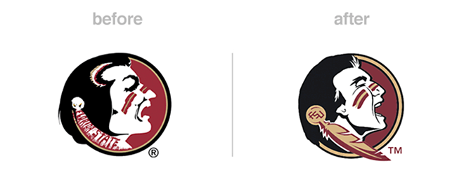 塞米诺尔人队是佛罗里达州立大学的足球队,其标志中的印第安人有所上移,同时把大学名称改成了 FSU。